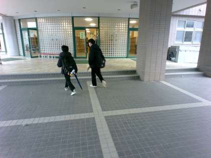 期末考査最終日の朝は、どんよりとした天候となりました。路面もまだ少し濡れているようです。