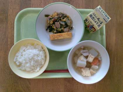 厚焼き卵 野菜のオイスターソース炒め 豚汁