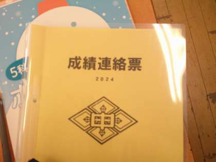 期末考査の成績連絡票を配付しました。点数も気になるところですが、間違ったところを見直して、理解することがとても大切です。見直しは済んでいますか。