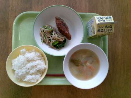 魚の香り揚げ しょうがひたし 呉汁 ごはん 牛乳