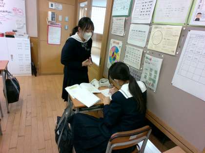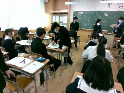 定理をベースに、順を追っていく。級友と教え合う、検討し合う。もはや、おなじみの場面を見ることができました。