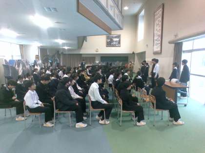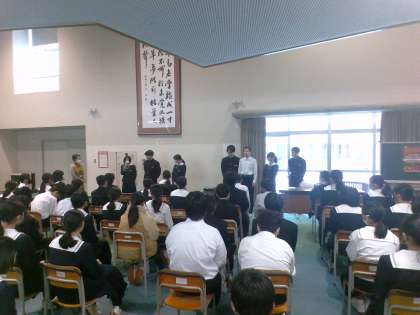 学年生徒会からの発表、学年担当教員から学習、生活についての話をしました。