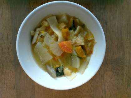 ほうとう鍋(カボチャベースの汁) ごはん 牛乳