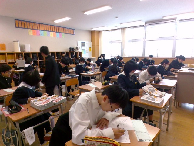 宿題集めをして、3学期の個人目標を書いていますよ。