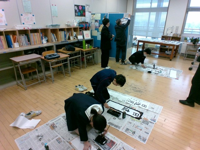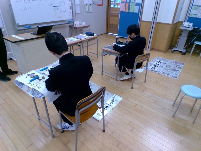 それぞれの学年に課された四文字の書写に、熱心に取り組んでいました。