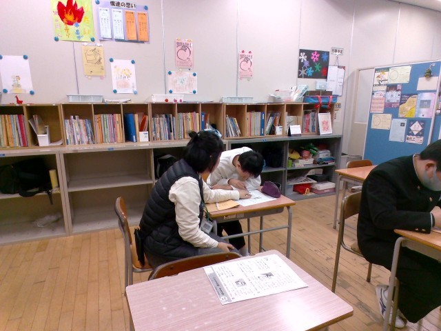 文章問題や漢字の書き取りに挑戦しています。「新年だから綺麗に書こう!」という声が聞こえましたよ。