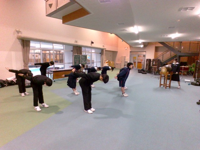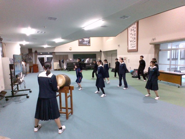 多目的ホールでは、新しい生徒会応援団が練習をしていました。
