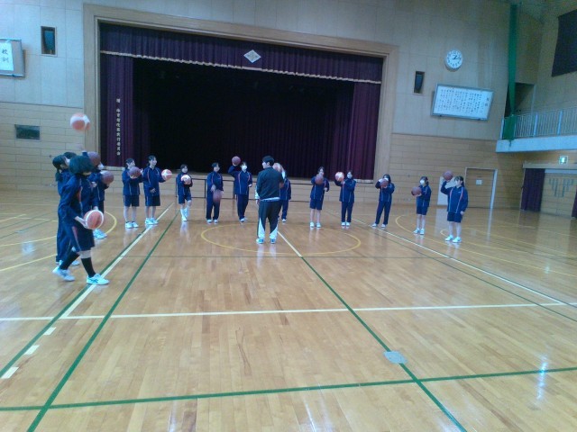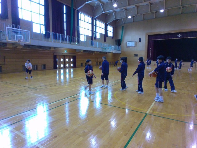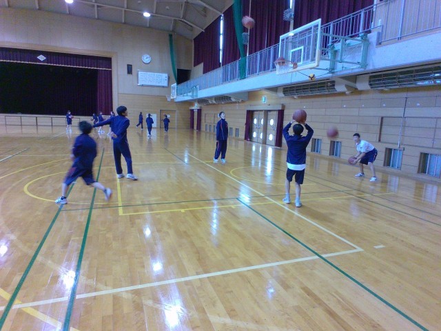 体育館にて、バスケットボールをしているところにおじゃましました。