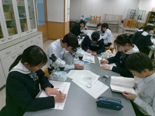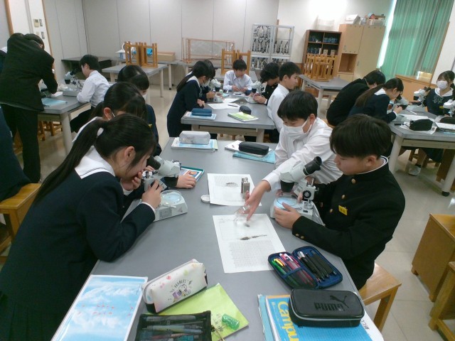 1月22日(水) 1年生 覗き込む顕微鏡の先には