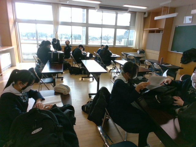 午後から、進路に係る懇談会の順番を待つ3年生の控室におじゃましました。