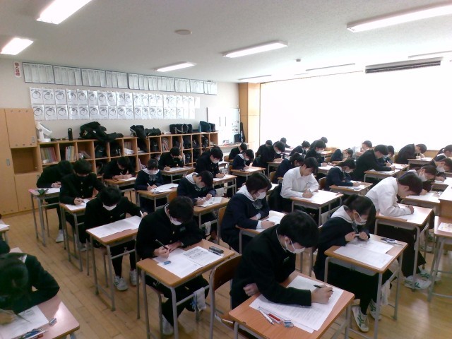 1、2組とも入試に向けた確認テストに挑んでいます。頑張れ、受検生!