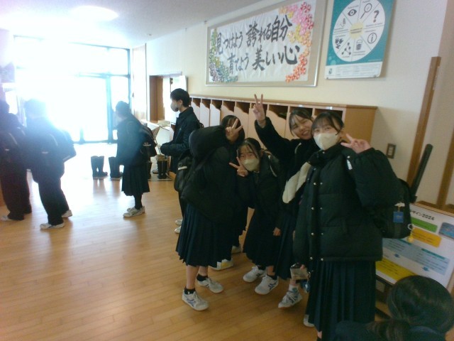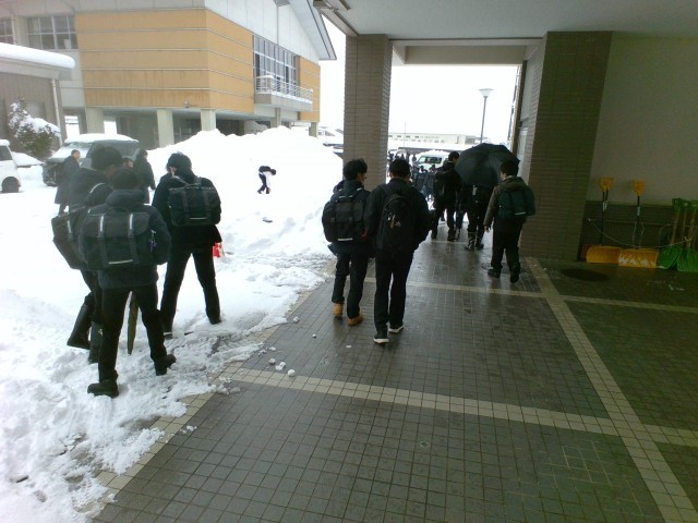 明日、3年生の皆さんは、ゆとりをもって自宅を出て各高へ向かいましょう。1・2年生の皆さんは、慌てず、安全に登校してください。