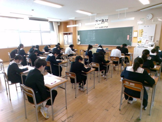1年生も確認テストに取り組んでいます。今日は、私立高校の一般入試の日です。2年後の今頃は、受検生ですね。焦らずコツコツ学力をつけていきましょう。