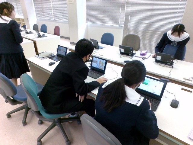 他の生徒の作品を参考にしながら、ゲームのアレンジをしています。
