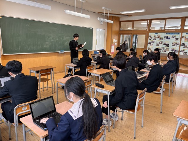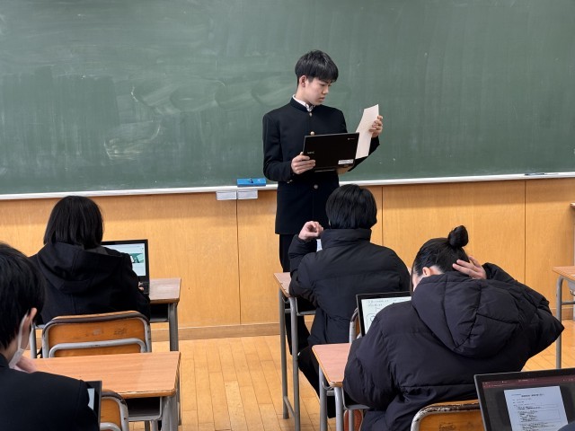 来週実施の後期最後の生徒議会と実践委員会に向けて、生徒会長から執行委員、実践委員長へ活動の振り返り方等を伝達しました。