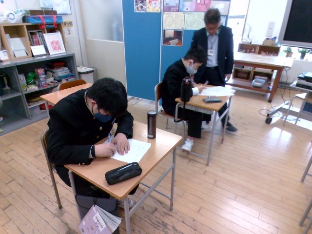 1組数学の様子です。比の学習をしていました、生活に役立つ数学ですね。