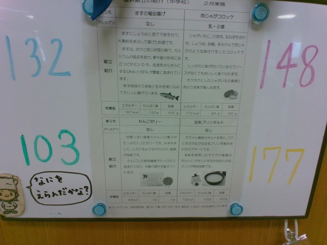 あ、給食の選択献立はそんなに難しく考えなくても大丈夫。どちらを選んでもおいしいですから。