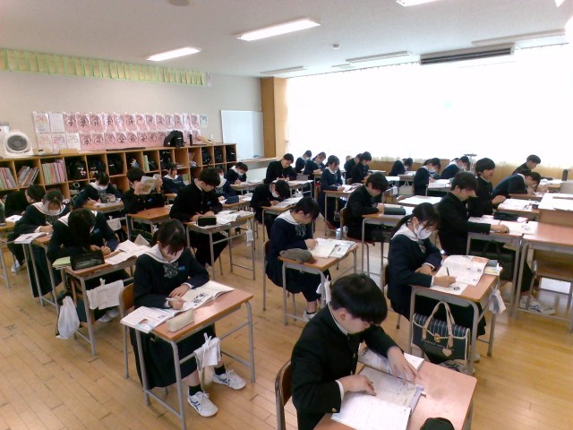 来週からの学年末考査に向けて、各自課題に取り組んでいます。頑張れ、2年生!