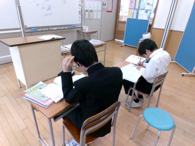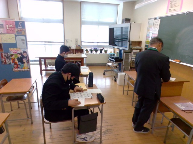 1、2組とも数学の様子です。1組は生活に役立つ割合の学習を、2組は学年末考査に向けて、問題演習に取り組んでいました。