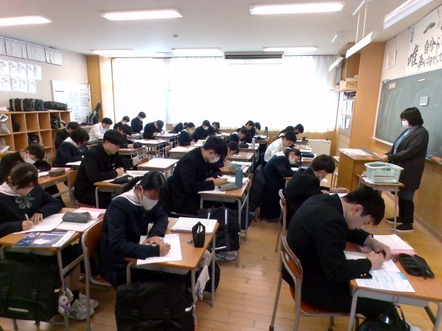 1組英語、2組数学の様子です。どのクラスも入試対策をしていました。頑張れ、受検生!