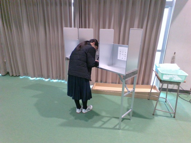 選挙制度等についての講義を聞いたあと、模擬選挙に臨みました。