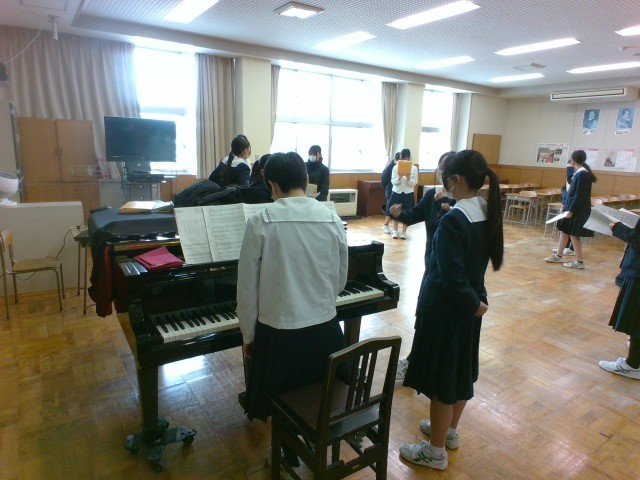 10日後に控えた卒業式。午後(5時間目)に3年生が歌の練習を行いました。パートごとに分かれての練習。