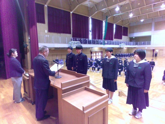 富山県中学校体育連盟・富山県中学校文化連盟表彰の様子です。