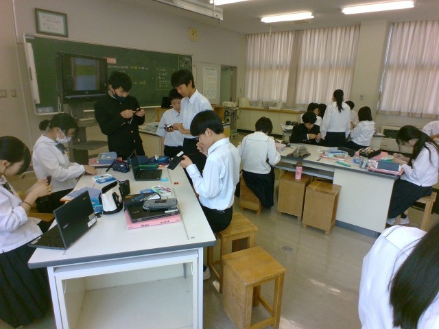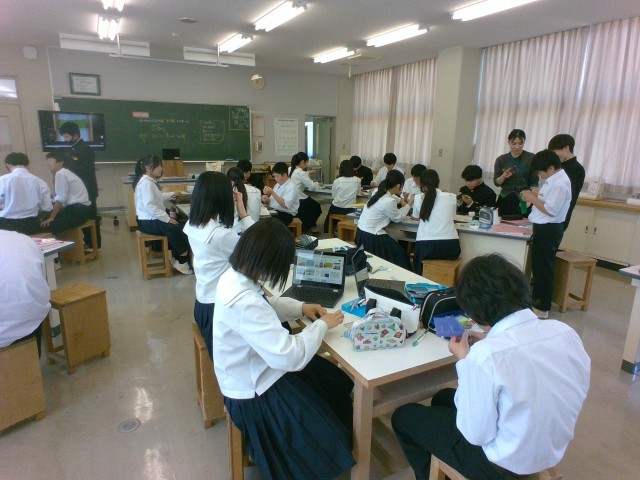 まつり縫いをしているところ。皆真剣な眼差しで、針先や縫い目を見ています。美しく仕上がることを期待。