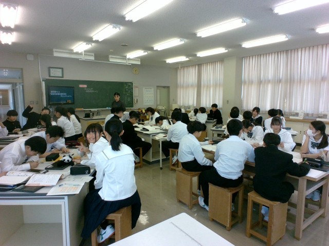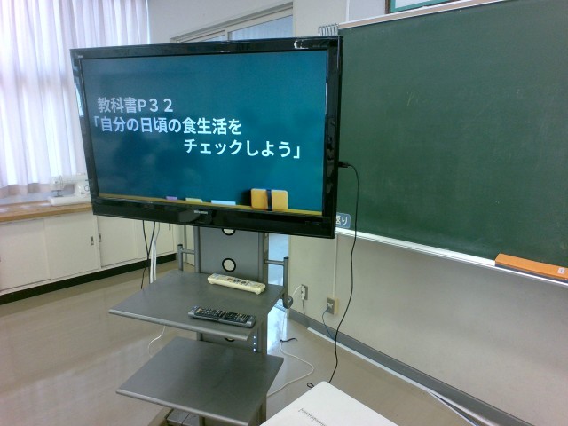 5時間目。被服室を覗いたところ、1年2組が家庭分野の授業中。