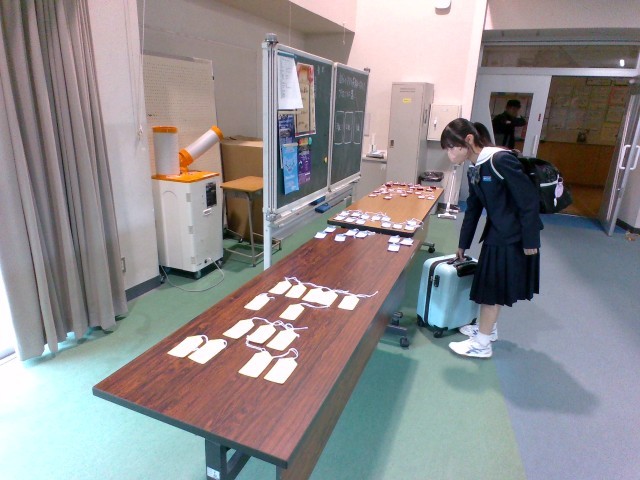 3年生は明日から始まる修学旅行の荷物を持っての登校です。