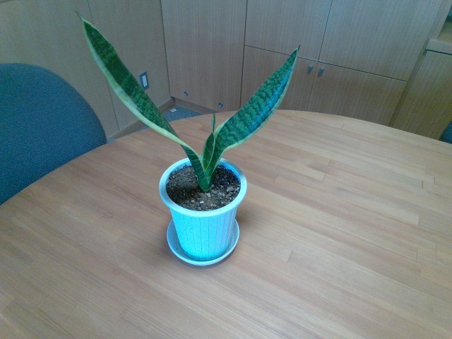 校長室の守護神、頼りになるサンセ(ス)ベリアさん。元の2枚の間に生えてきた新株が随分と伸びてきました。(4月7日の記事「春を探しに」と比較してみてください)適量の水やりが功奏しているようです。
