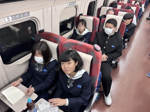 新幹線車内の様子です。みんな元気よく過ごしています。