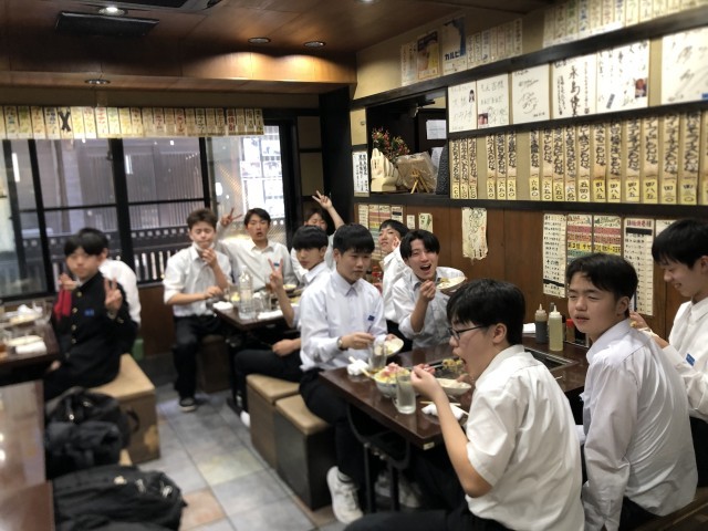 2組昼食の様子です。もんじゃ焼きです。