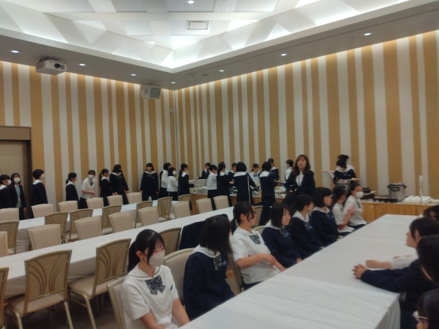 3組女子から順に、いよいよスタートです。食べられる分だけ、とりましょう。