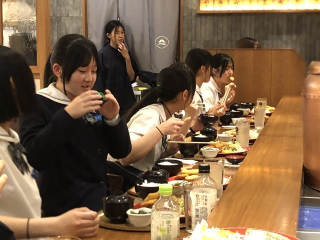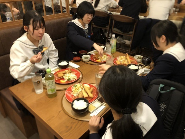 東京スカイツリー内、串亭での昼食です。揚げたてをいただいております。