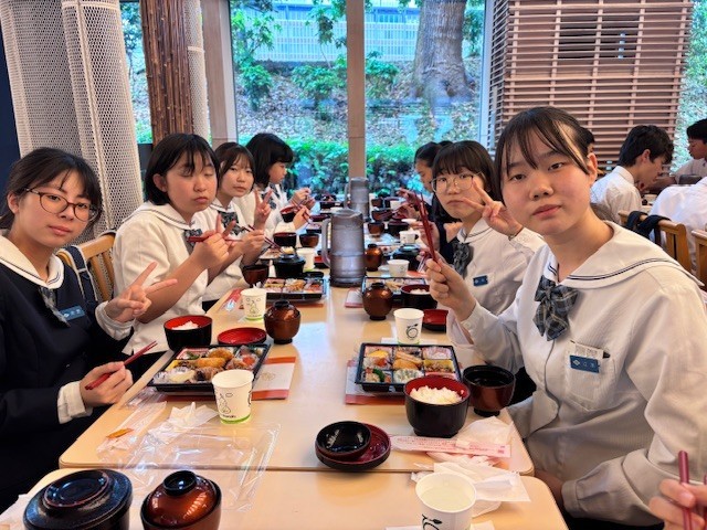 1組の昼食の様子です。皇居前の楠公レストランにて食事をとりました。