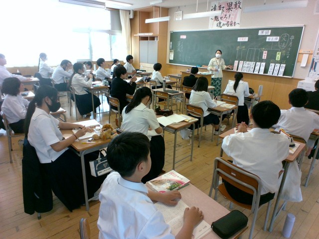 2年1組(写真左)は国語。自立語や付属語についての授業中です。