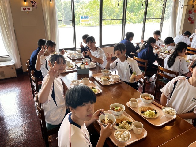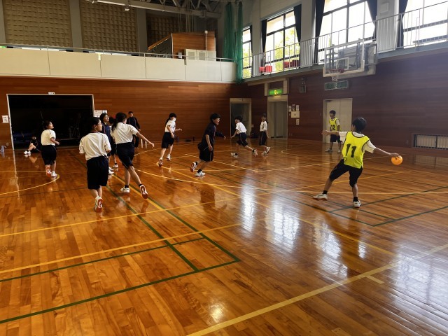 昼食を食べて、午後からは体育館で学年レクリエーションです。ドッヂボール、熱戦を繰り広げています。