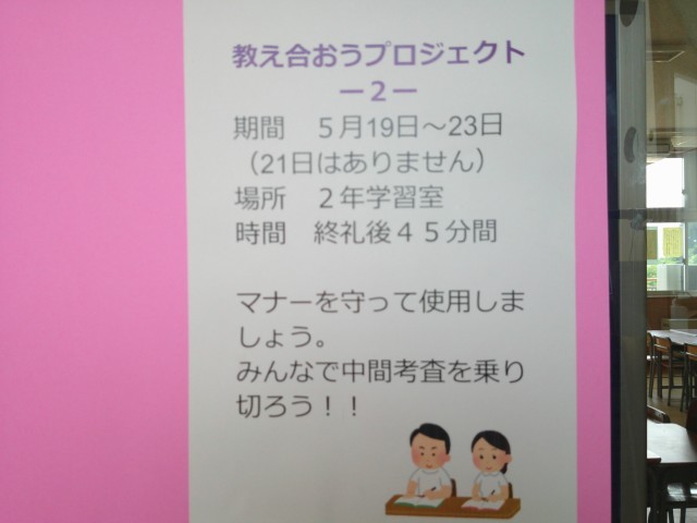 2学年生徒会では、今年度も「教え合おうプロジェクト」を企画しています。来週、実施しますので、ぜひ参加してください。