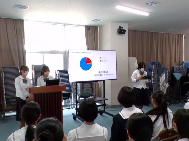 振り返りアンケートの結果から、よかった点やこれからの学校生活で身に付けていきたい点についての話がありました。