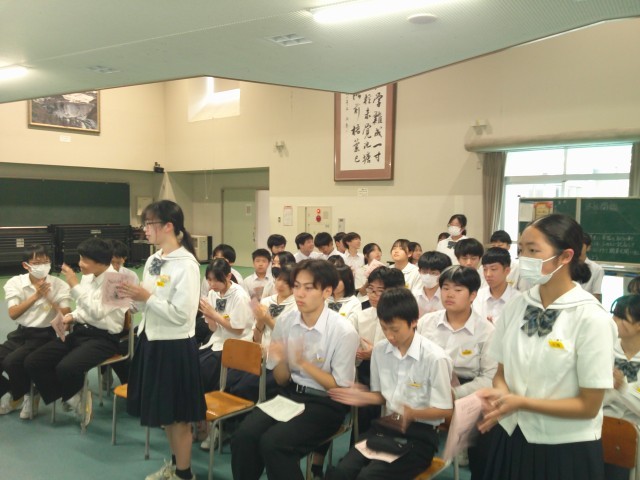 まず、学年生徒会からルールや持ち物の確認を行いました。(学級討議でも話し合って決めたことです。)