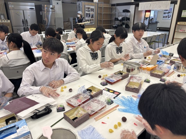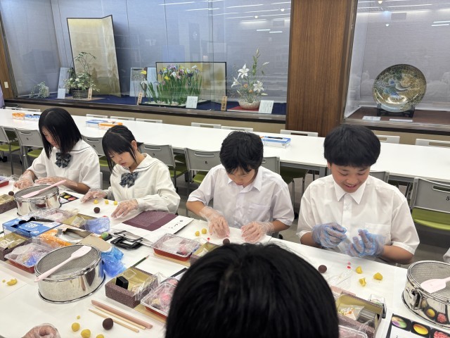 石川県観光物産館での和菓子作り体験です。上手に作っています。