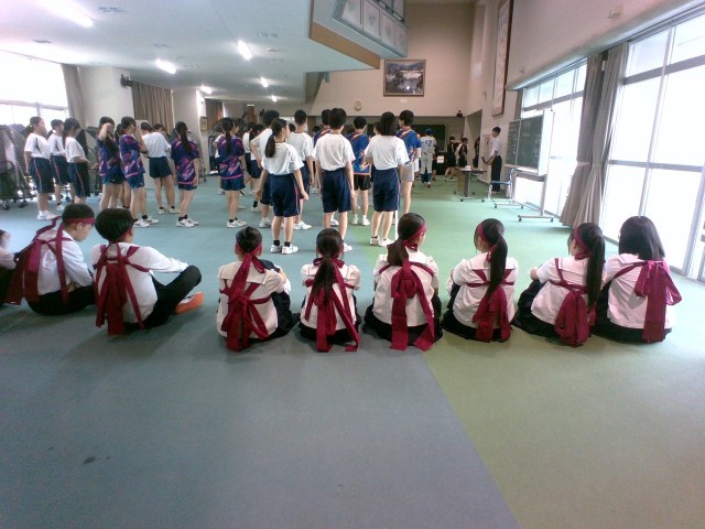 多目的室で待機する様子からも緊張感が伝わってきます。