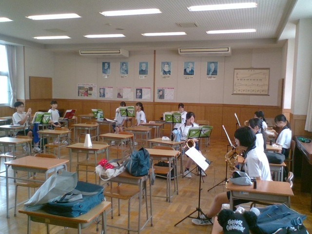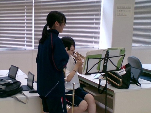 吹奏楽部はパート練習、家庭部は調理実習、美術部は個々に模写を行っていました。