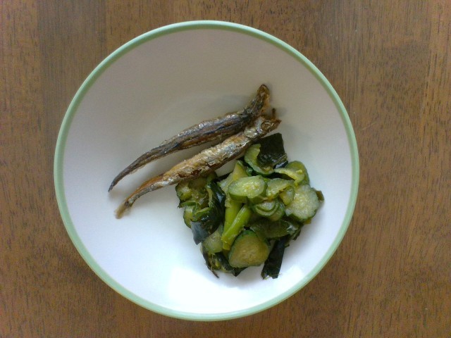 中華和えは、わかめよりもきゅうりやアスパラの方が目立って見える感じでした。わかめは、カリウム、ヨウ素、β-カロチン等の栄養が豊富で、中でもマグネシウムは神経の興奮を抑制し、イライラを鎮めて精神を安定させる働きがあるそうです。あ、この栄養素がきゅうりとアスパラに染み込んで、気持ちが落ち着いているから「何で、献立名に私たちの名前が入っていないの?」と立腹しないわけか。あ、このストーリー、前も書きましたね。申し訳ございません。