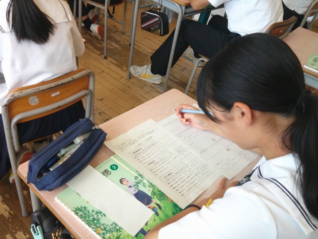 「社会に学ぶ『14歳の挑戦』」に向けて個人目標を立てました。今回は、行動面で人間力の向上を目指す目標を考えました。