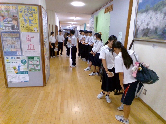 本日から期末考査期間となり、同時にメディアコントロールウィークも始まりますが、今週末に市民スポーツ大会を控えているため、短時間ですが放課後に部活動を行う生徒がいます。その場合、16:15までとしております。