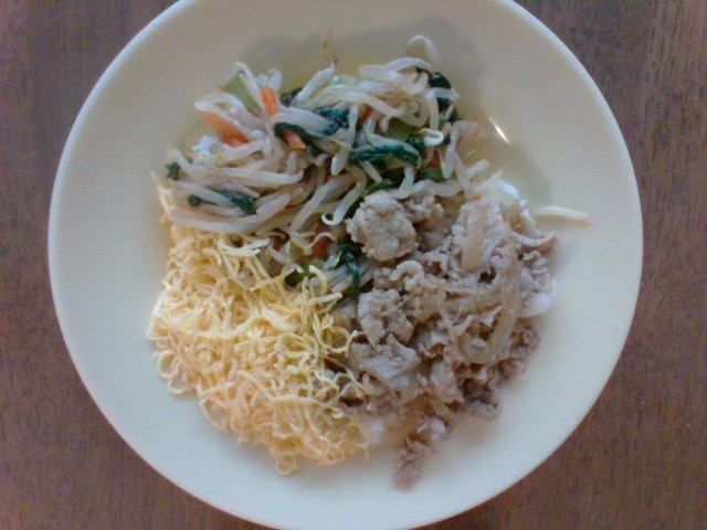 韓国の著名な料理ビビンバ、そして中華スープということで、オリエンタルな香りの漂う本日の献立です。