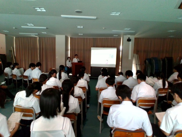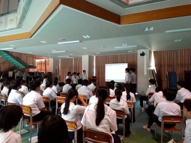 今日は、学年生徒会によるスライドを使っての心構えの確認や実際の様子の寸劇がありました。その後、出発式を行いました。