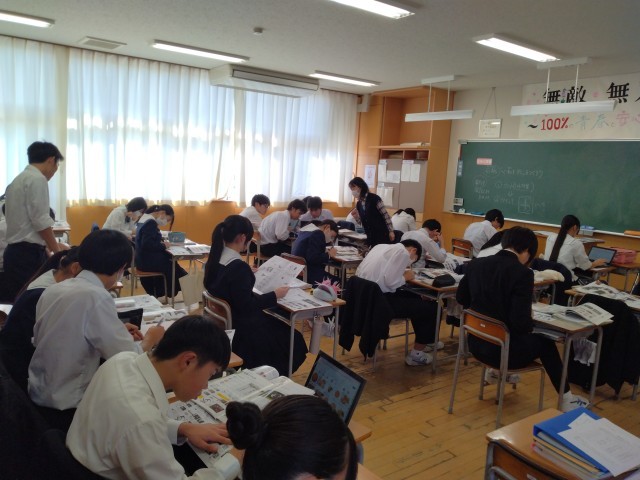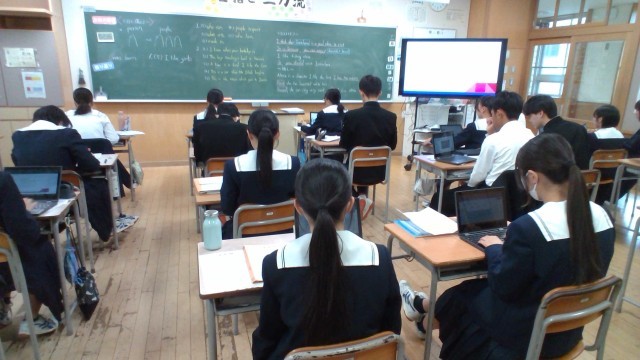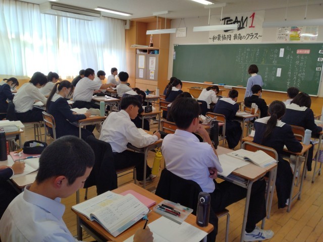 授業の様子は、というと・・・教師の問いかけに積極的に答える生徒が何人も見受けられました。授業の内容を「自分ごと」として捉えると、自ずとそうなるはず。それが「主体的な態度」であり、だからこそ「対話的な学び」へとつながる。